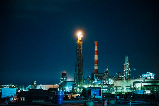 夜も一生懸命働く工場は、日が暮れると魔法がかかったかのような美しい夜景に姿を変えました。