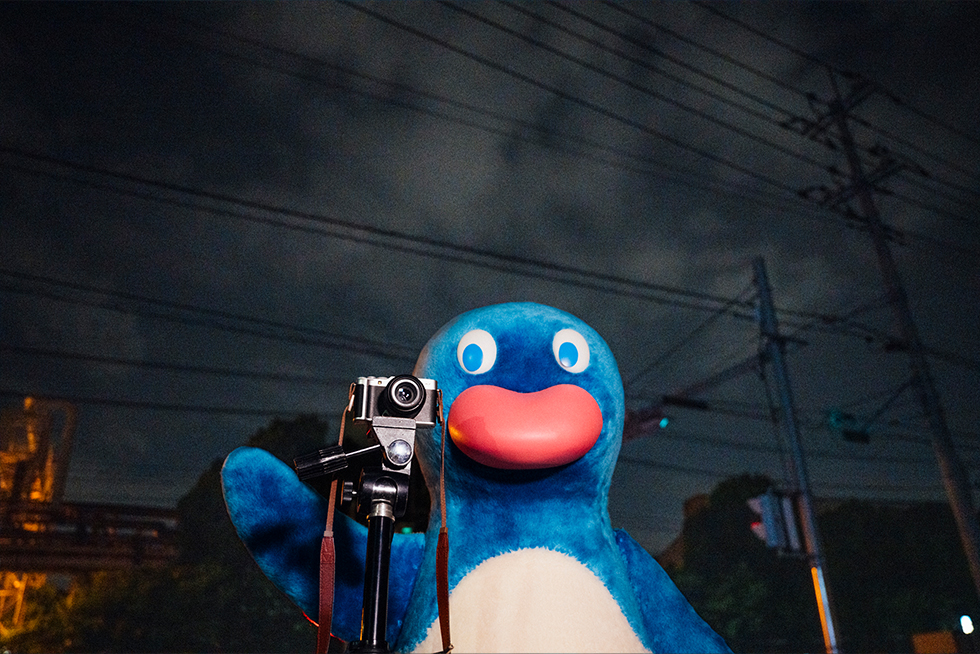 狙っていた工場の夜景が撮れ、満足そうなはまペン。