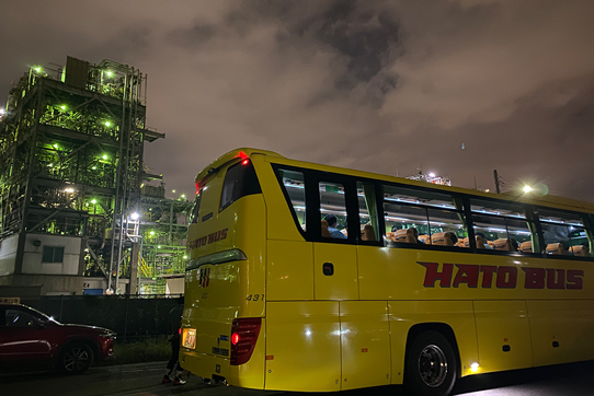 工場夜景は、①公共交通機関などを利用してスポットに向かう、②川崎マリエン、東扇島東公園などの公共施設から、③首都高速川崎線などを走りながら、といろいろな方法で眺めることができますが、魅力的なツアーも各種用意されています。