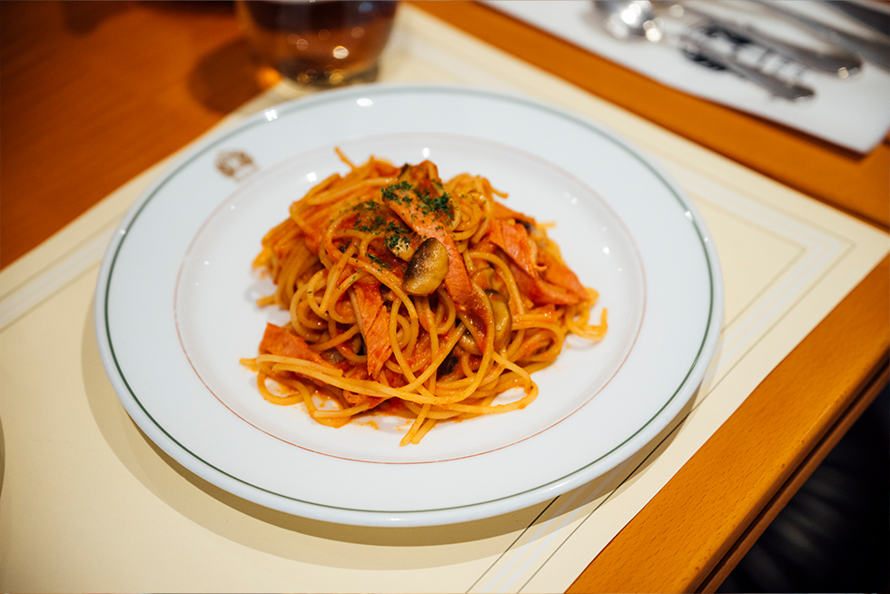 2代目総料理長 入江茂忠が、戦後、ホテルがGHQ将校の宿舎として接収されていた時代に、茹でたスパゲッティに塩、胡椒、トマトケチャップを和えた物を米兵が食べていたことを知り、接収解除後「ホテルで提供するに相応しいスパゲッティ料理を」と改良を重ね、トマトが主役の風味豊かなオリジナルソースを創作し「スパゲッティ ナポリタン」が誕生しました