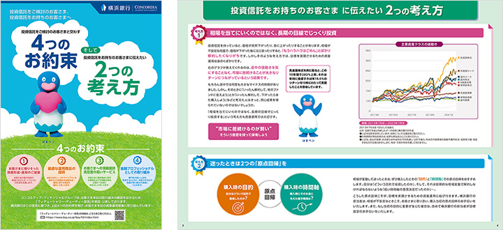 - お客さまの投資判断に資するよう、ご提案に使用する各種パンフレットやツール等を整備いたします。