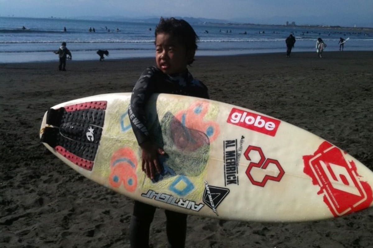 家の近くに海があって、お父さんがサーフィンをやっていたんですけど、4歳の頃に海に連れてってもらって、お父さんとか、地元の人がサーフィンしているのを見て楽しそうだなって思ってはじめました。