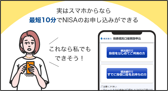- 横浜銀行または他の金融機関でNISA口座を開設したことのあるお客さまは本サービスをご利用になれません。