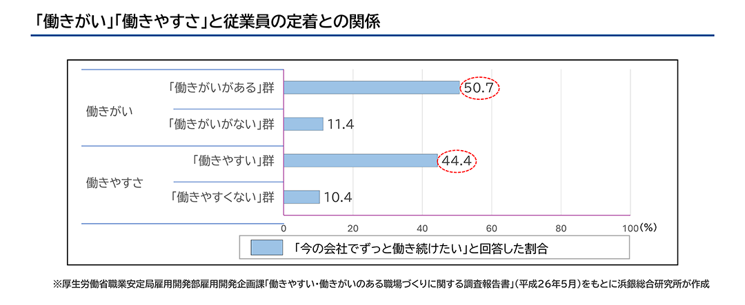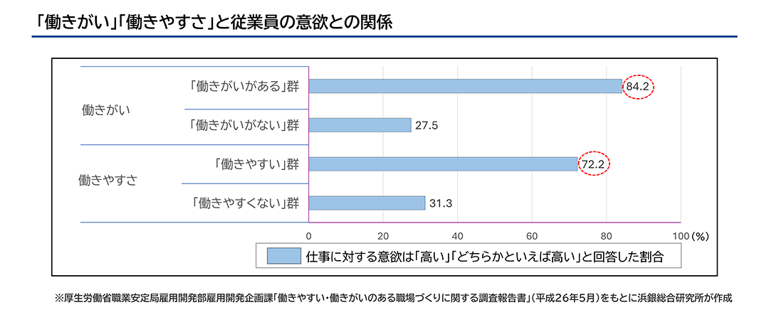 つまり働きがいを高めるためには、適切な雇用管理制度により従業員一人ひとりが意欲的・自律的に働ける職場環境を整えることが重要です。