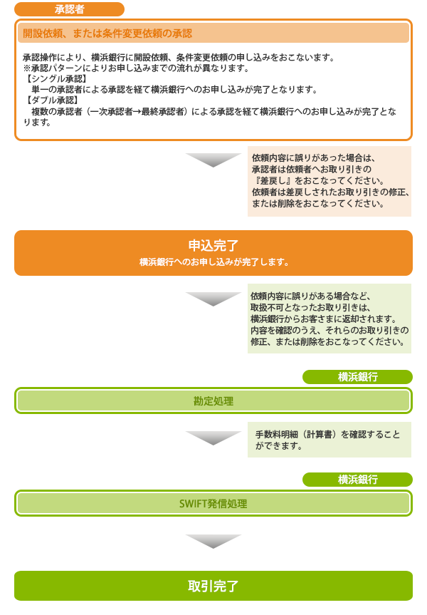 開設依頼、条件変更依頼の基本的な流れは下図のとおりです。