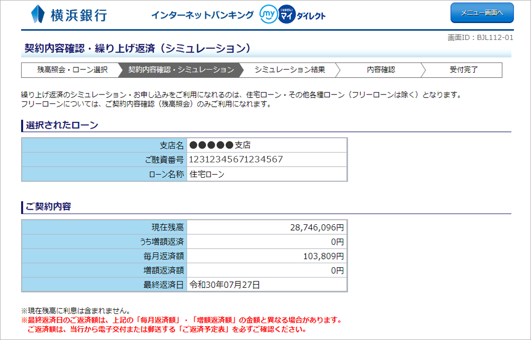 なお、インターネットバンキングの「契約内容確認」からも現在のお借入残高、毎回のご返済額がご確認いただけます。